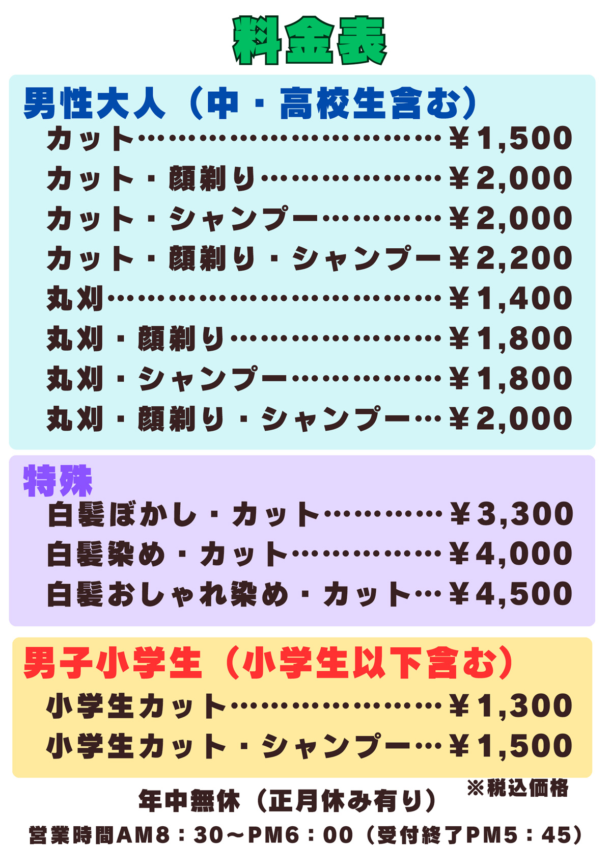 営業時間 AM8:30 ~ PM6:00